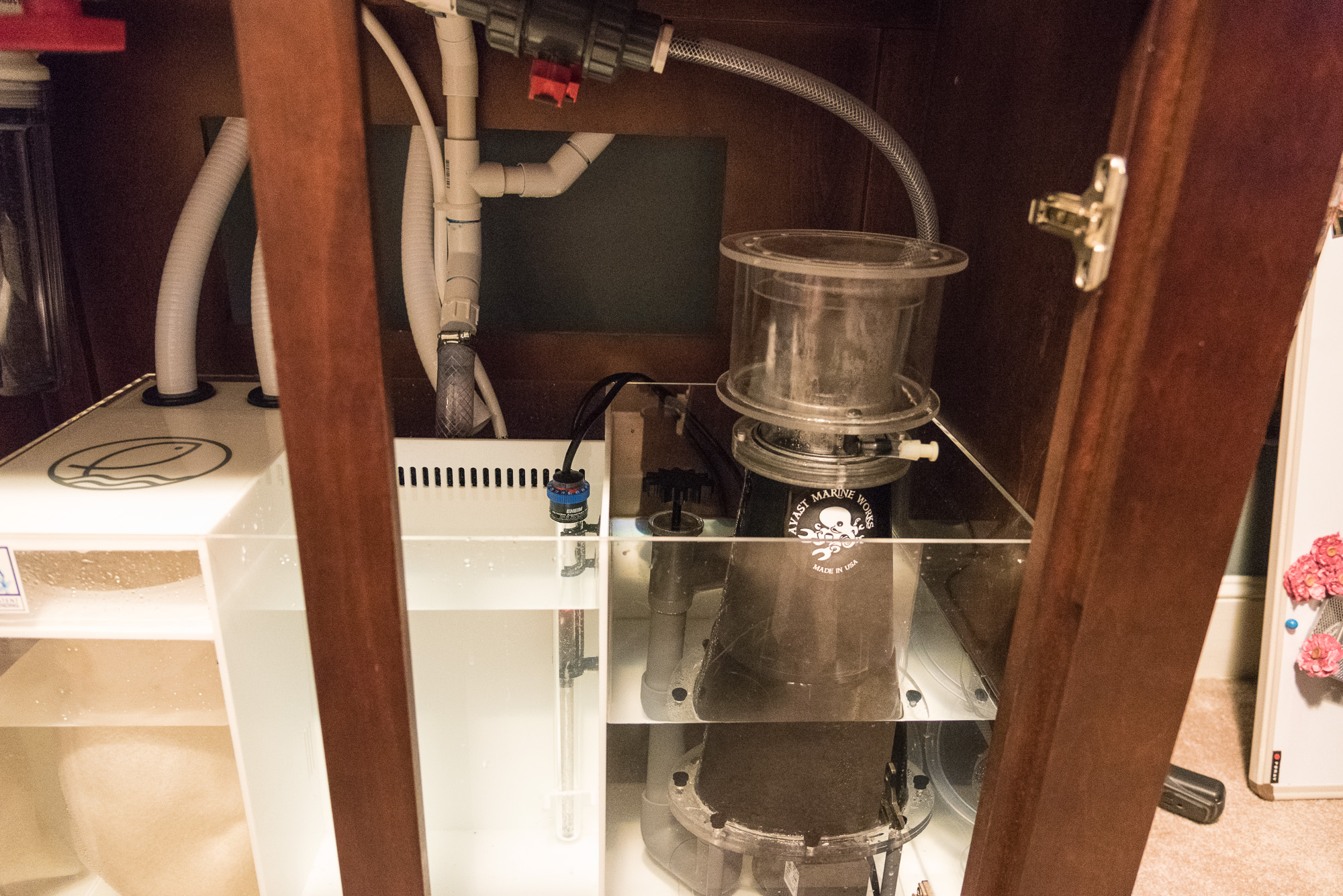 In terms of future upgrades my plans include a Neptune Systems Apex controller being added as soon as I can justify the cost. Once the tank is to the point of requiring dosing, I plan to add automated dosing pumps as well. At some point I may explore changing my return pump from an AC to a DC pump but right now with the way things are running I am quite happy with the constant non-adjustable flow the AC pump provides, especially with how tough the skimmer is to get dialed in. I could see myself adding some other items in the future as well, including a skimmate locker, auto-feeder, or maybe even a bio-pellet reactor. Some things I know I do not want to incorporate at any point include UV sterilization, Calcium reactor, O-Zone reactors, etc. I am trying to keep the system as simple as possible, while also automating as much of it as I can keeping in mind the very limited space I have to work with. The space limiting factor also means I will not likely be able to fit a frag tank into the setup at any point which is tied into the main system. At best I could put a totally separate system in my basement for frags but that is fairly unlikely.